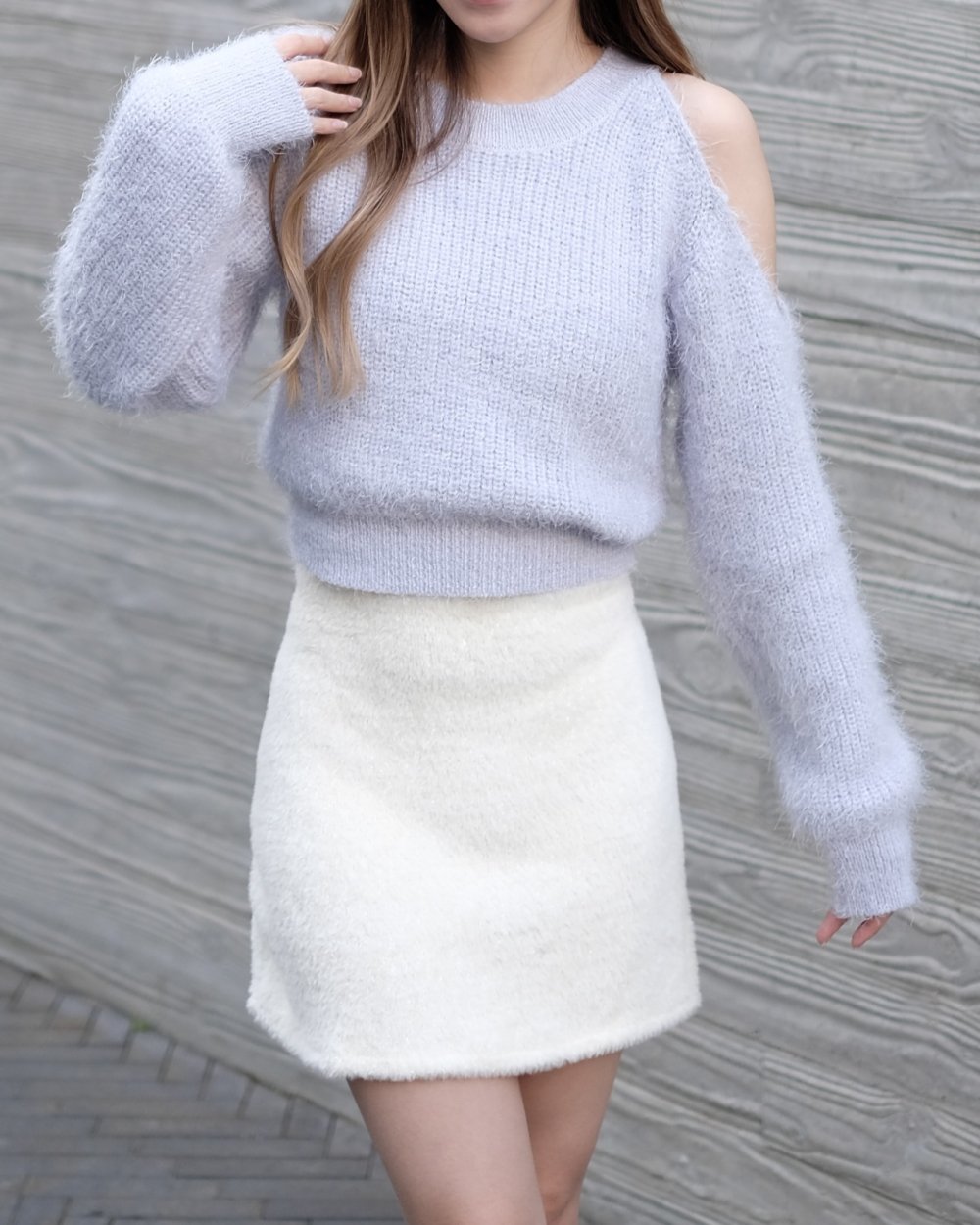Half Off Shoulder Fluffy Top