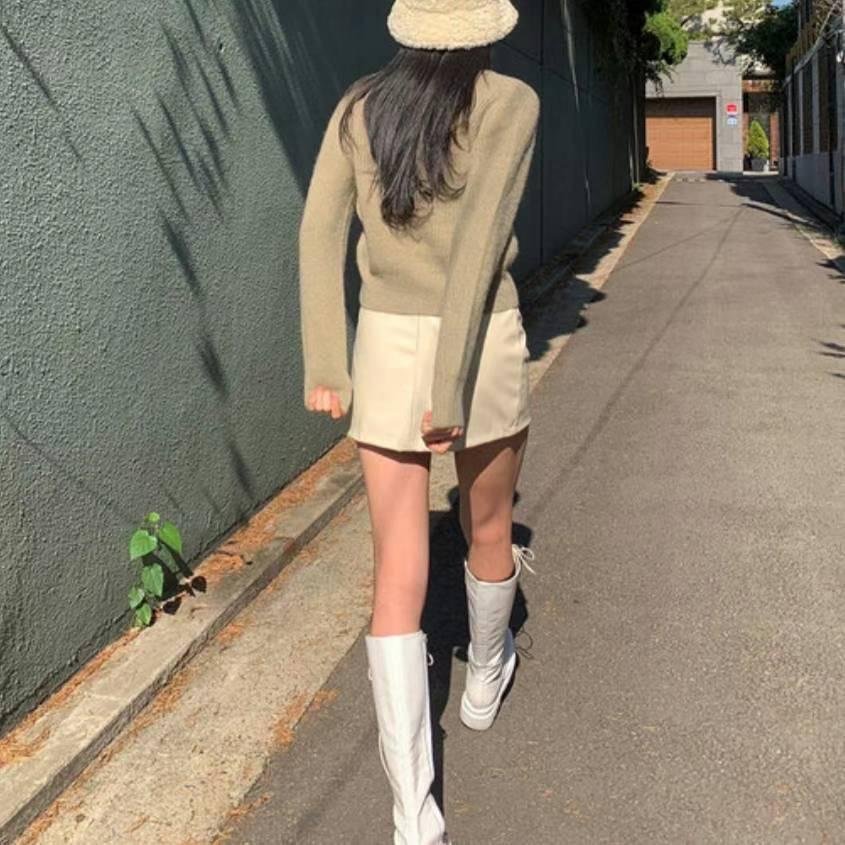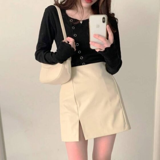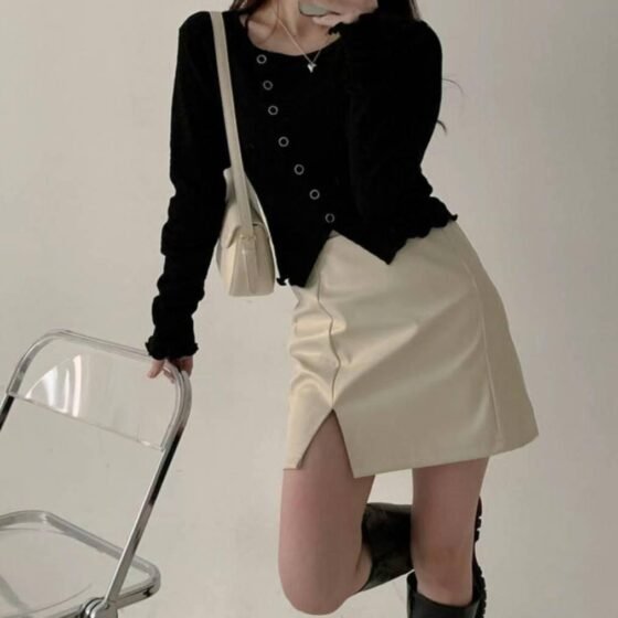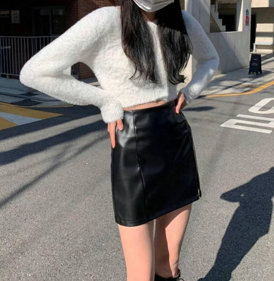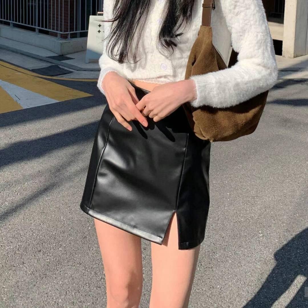 小開叉皮裙